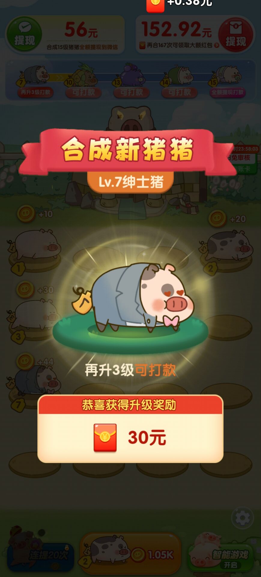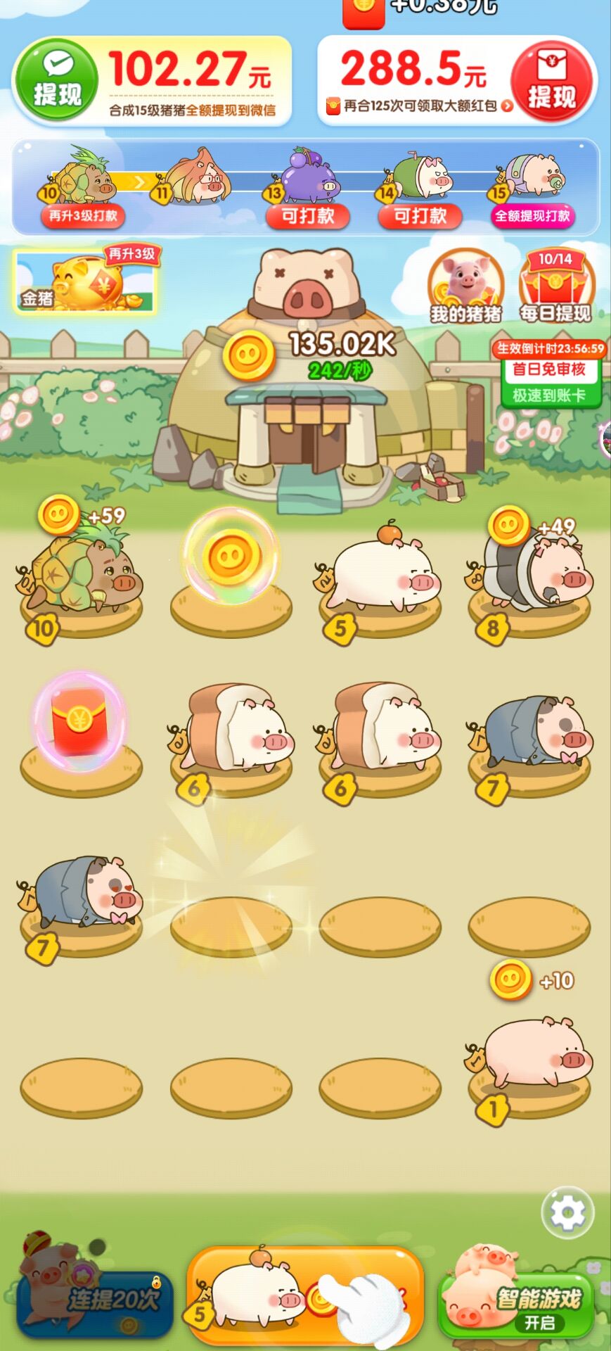 优先合成高等级小猪,提升金币/红包产出效率。