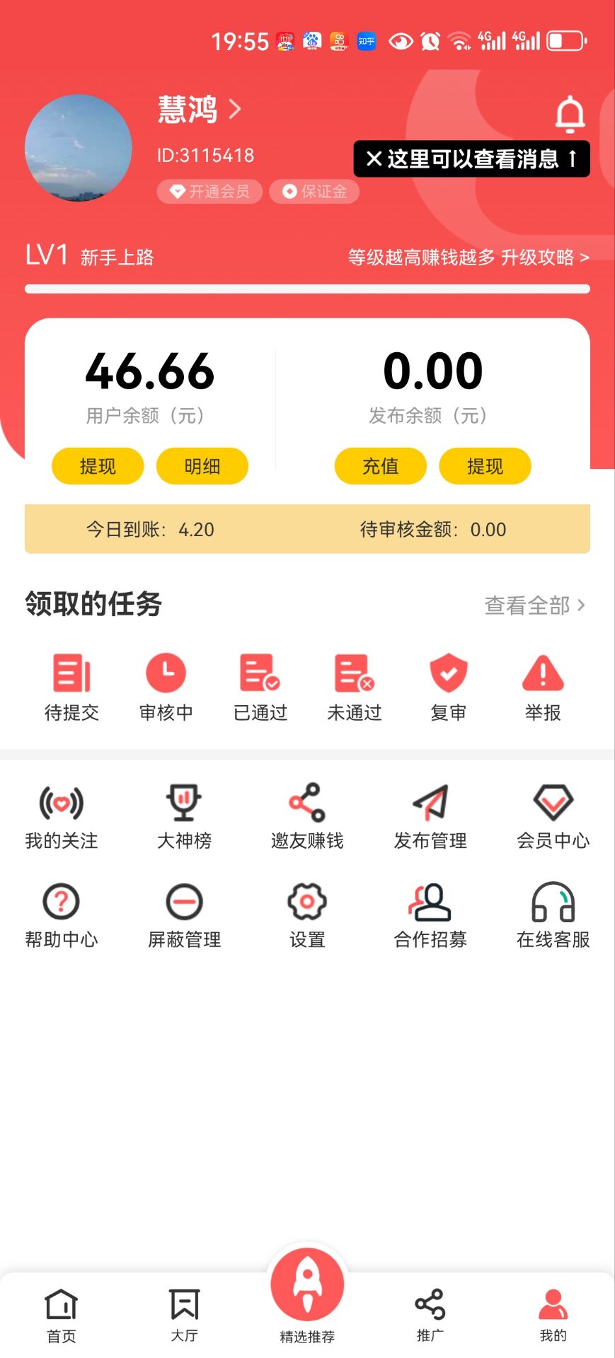 2、收益与提现优势 :平台的收益机制十分灵活,除了完成任务的基础赏金,还有多重额外奖励。比如注册就送1元,完成新手任务再送9元;邀请好友加入可享多级提成,一级好友任务分成8%、游戏试玩分成20%,二级好友对应分成则为4%和10%,好友完成新手福利或首次提现时,邀请者还能获得额外现金奖励。提现方面门槛极低,满1元即可申请,支持微信、支付宝提现,多数情况下能实现秒到,即便特殊情况也能在24小时内到账,全程无额外手续费。